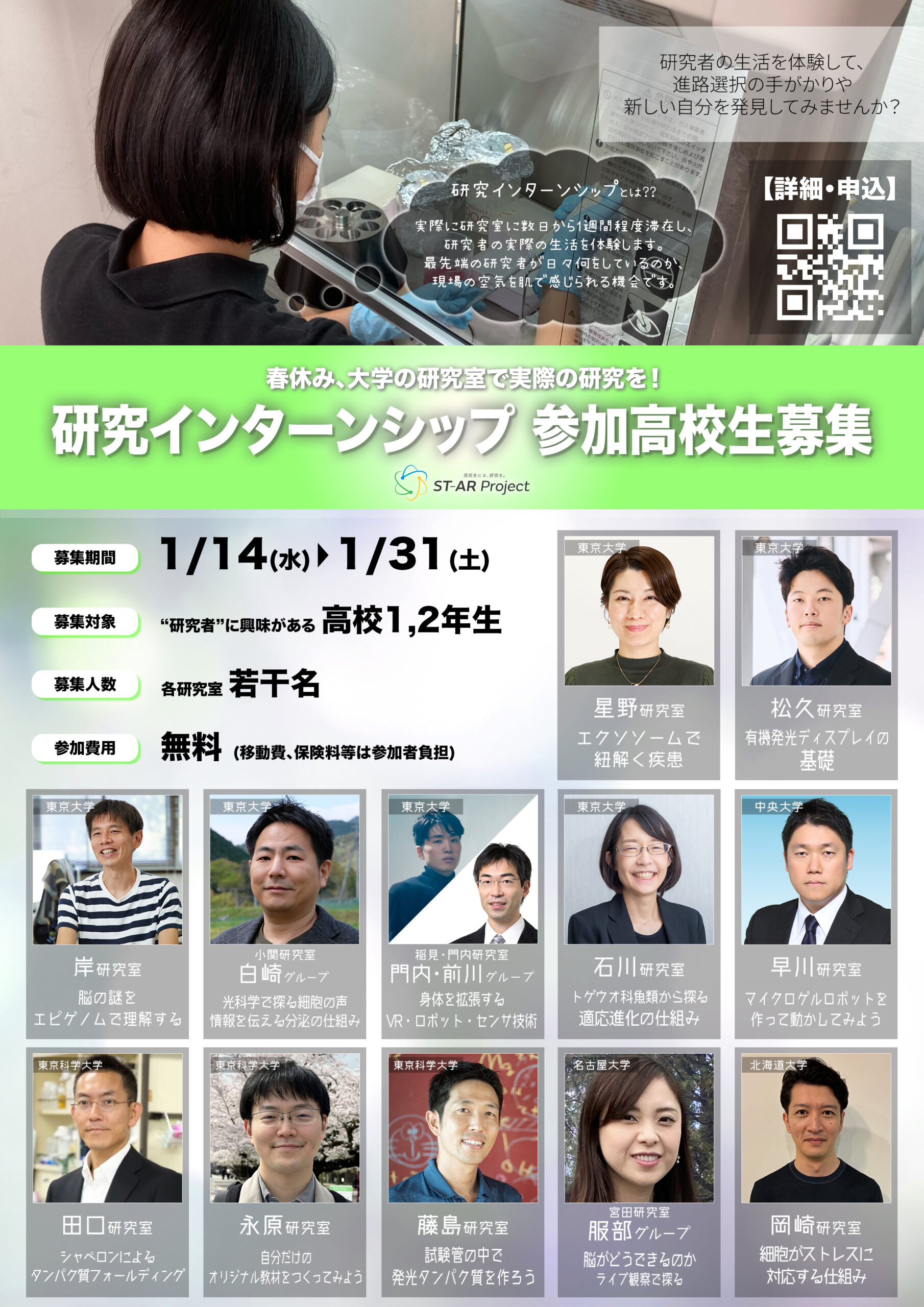 受け入れ研究室からの推薦状など、個別の対応はお断りしておりますのであらかじめご了承ください。